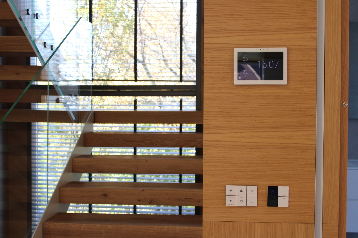 Извършваме доставка, монтаж, програмиране и пуск в експлоатация на всички контролни и управляващи устройства в системата – бутониери, термостати, сензорни панели и KNX сензори за комфортно управление на осветление, климатизация, сигурност, качество на въздуха и мултимедия. Обучаваме потребителите и предоставяме екзекутивна документация.